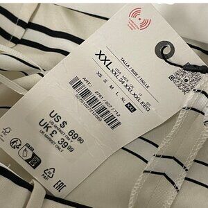 Zara Womens Pants XXL Ecru Geometric Printed Polyester Trouser 2761/027 NWT