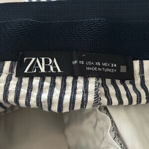 Zara Womens Pants White Black Striped Ribbed Seersucker Feel Ankle Stretch XS