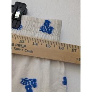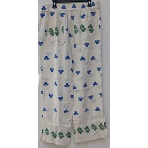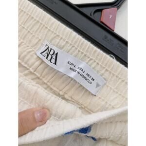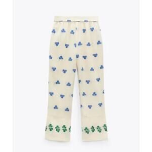 Zara Women's Pants Wide Leg Embroidered Flowers Cream Green/Blue Size Large