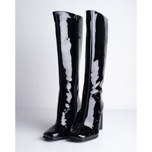 Zara Womens Patent Faux Leather Boots Heeled Black US 6.5 EU 37 3062/210 NWD
