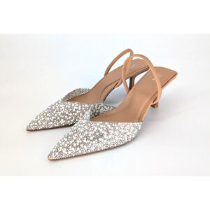 Zara Womens Pearl Crystal Rhinestone Glam Bling Kitten Heel Slingback Pumps 7.5