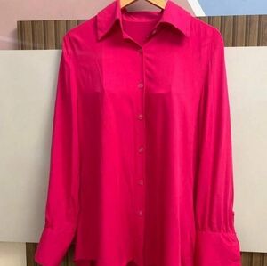 Elevate your wardrobe with this vibrant pink button-up shirt from Zara. Perfect for any occasion, this top offers both style and comfort.