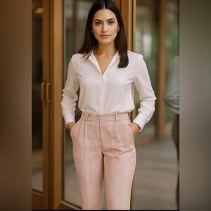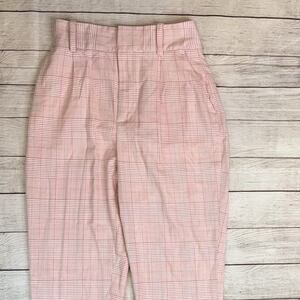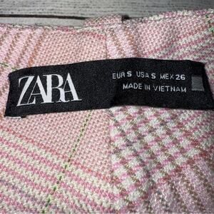 Zara Women's Pink, Ivory, Light Beige Plaid Pleated Trousers Pants Size Small