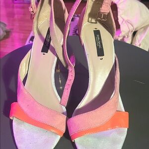Vibrant Zara heels with pink and orange straps. Perfect for adding color to any outfit.