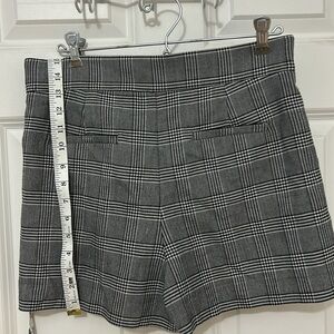 Zara Women's Plaid Shorts Grey/Black Size Medium High Waist Side Zipper Pockets