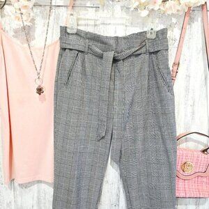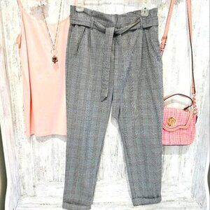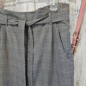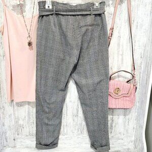 Zara Women's Plaid Trousers Dress Pants Size Small Black White Pull On Cuffs