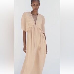 Zara Women’s Pleated Light Pink / Peach Midi Plisse Dress S Beautiful Long Maxi