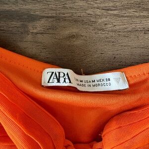 Zara Womens Pleated Ruffle Mini Dress Orange Medium