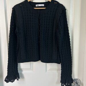 Zara Womens Pointelle Button Down Knit Cardigan Flare Lace Cuffs Whimsigoth Vibe