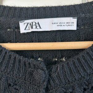 Chic meets cozy in this Zara Women’s pointelle knit cardigan—the perfect piece to elevate your everyday look! Featuring delicate lace flare cuffs, stylish pointelle stitching, and a flattering button-down fit, this black beauty is ideal for layering in any season. Pair it with jeans or a midi skirt for effortless cool-girl vibes!