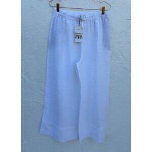 Zara Womens Pull On Elastic Waist Drawstring Linen Trouser Pants White Sz L