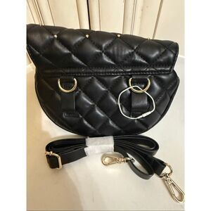 Zara Women's Quilted Studded Flap Belt Bag Crossbody Black OS NWOT