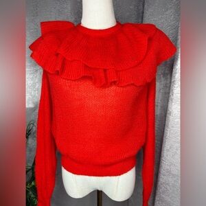 Zara Women’s Red Cropped Ruffled Knit Sweater Sz S
