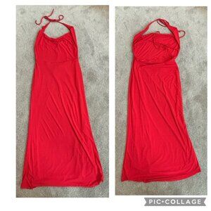 Zara Women's Red Draped Cowl Halter neck Maxi Dress open back Sz L NWT classy