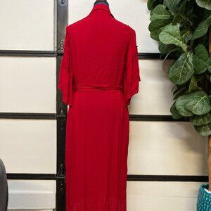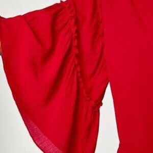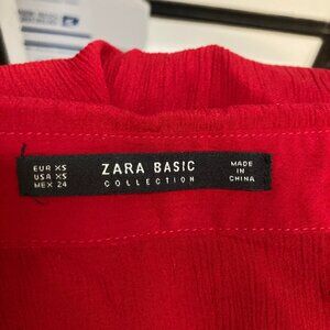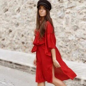 A Zara red ruffled sleeve tunic dress with belt. Mid-length sleeve, lapel collar, side vent at hem. Front buttons. Size XS. Never worn, like new. 100% viscose, soft and breathable.