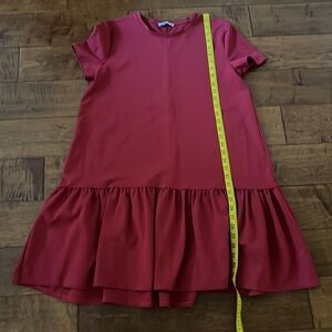 Zara Womens Red Short Sleeve Loose Fit Knee Length Tiered Dress Size M