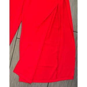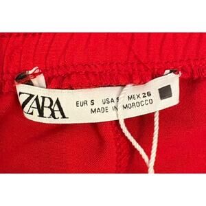 The Zara Women's Red Wide Leg Pant in size Small features a flowy side leg slit and ties, making it a versatile and stylish addition to any wardrobe. Made from crepe fabric with a comfortable elastic waist, these dress pants are perfect for casual outings, travel, or formal events. The bold red color and wide-leg design give them a trendy and bohemian vibe, ideal for a festival or city-inspired look. Easy to care for with machine washable instructions, these pants offer both style and comfort for the modern woman.