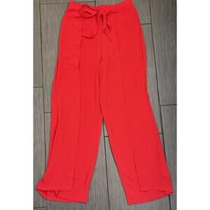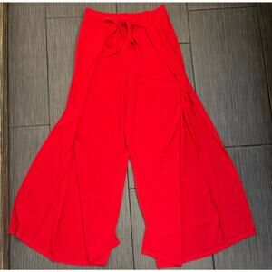 Zara Women’s Red Wide Leg Pant Flowy Side Leg Slits Ties Size Small NWT