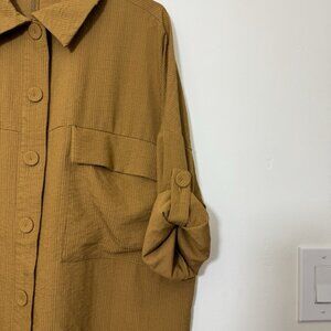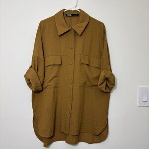 Zara Women’s Relaxed Fit Botton Up Tunic Shirt Size L Roll Tag Sleeve Pockets
