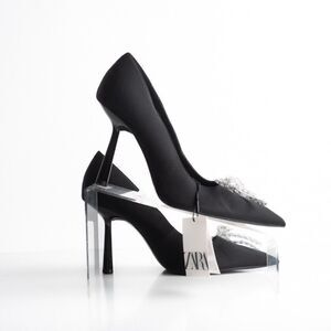 Zara Womens Rhinestone Bow Pointed Heels Pumps Black US 10 EU 41 NWT 2247/010