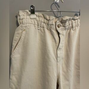 Zara Women's Ruched Waist Paperbag Jeans Cuffed‎ Size 8 Cream