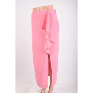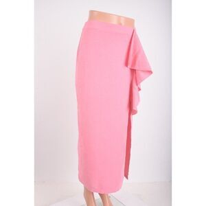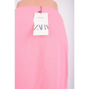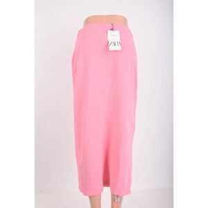 Zara Womens Ruffle Linen Blend Midi Skirt Pink Sz US S 7950/939 NWT