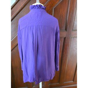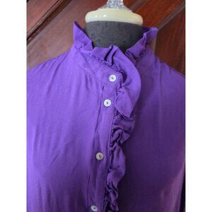 Zara Womens Ruffled Button-Down Blouse Purple Medium