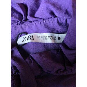 This vibrant Zara blouse, crafted from soft viscose, offers a stylish flair with its ruffled front design. The medium-sized blouse in a striking purple hue ensures a comfortable fit and adds elegance to your wardrobe. Perfect for adding a pop of color to your attire.