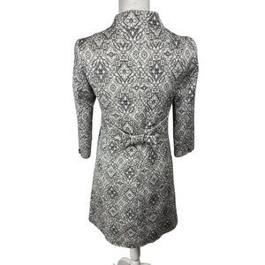 Zara Women's S Longline Brocade 3/4 Sleeve Coat Jacket B&W Silver Wool Blend