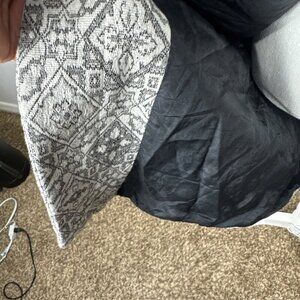 Black & White ornate diamond pattern has metallic silver thread running through it
