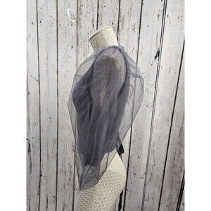 Zara Womens S Sheer Puff Sleeve Wrap Tie Cropped Top Blouse Shirt Gray EUC