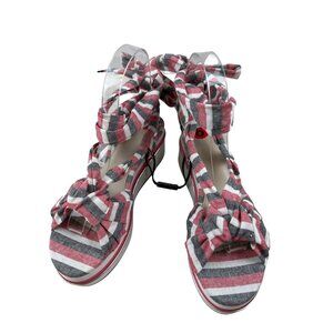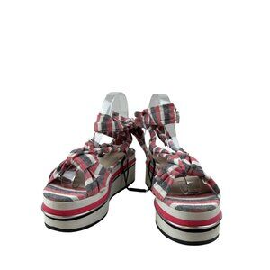 Zara Women's Sandals Lace Up Strappy Stripe Wrap Ankle Platform Size 6 EU 36