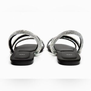 Zara Women's Sandals in Black Silver Accents Zara RHINESTONE FLAT SANDALS 39