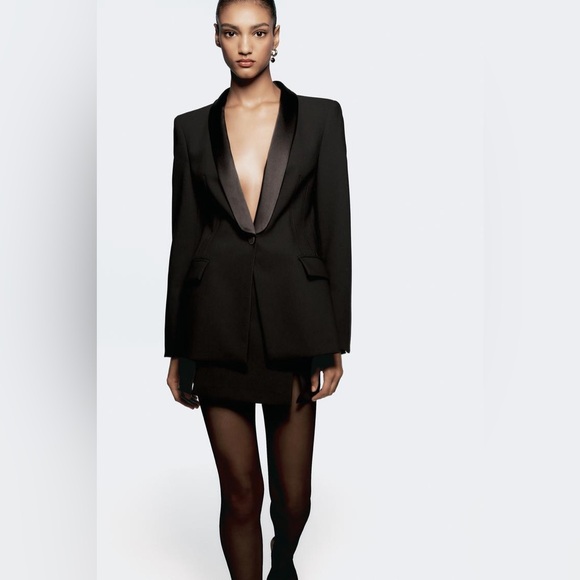 Zara Women’s Satin Lapel Tuxedo Blazer Jacket Solid Black Size Medium