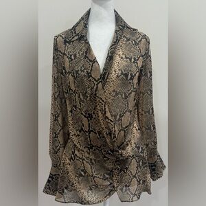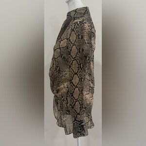 Zara Women's Semi Sheer Snake Print Long Sleeve Cross-Front Blouse Size Medium