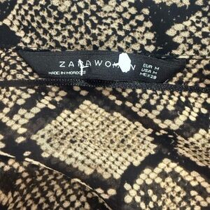 Zara Women's Semi Sheer Snake Print Long Sleeve Cross-Front Blouse Size Medium NWOT