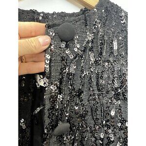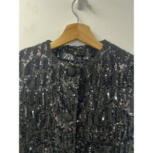 Zara Womens Sequin Jacket Blazer XS Black Fringed Textured New