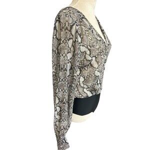 Zara Womens Sheer Brown Black Bodysuit Snake Print Chiffon Long Sleeves Top M