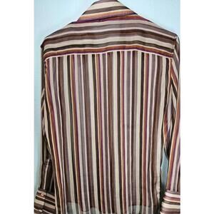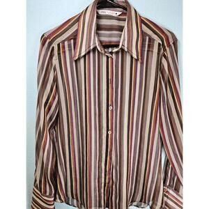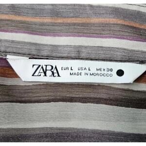 Zara Women's Sheer Striped Button-Up Collared Shirt Size Large