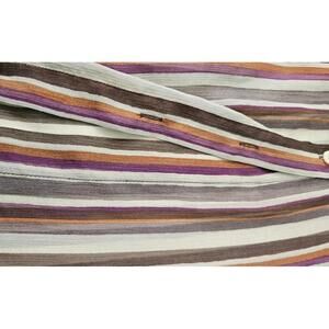 - Colorful stripes in shades of purple, brown, and cream