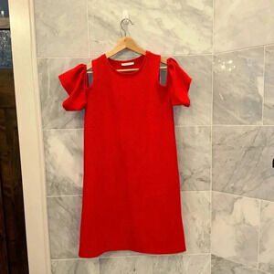 Zara Womens Shift Dress Size M Red Textured Cold Shoulder