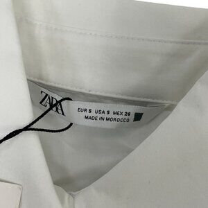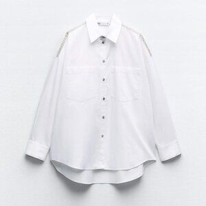 Zara Womens Shirt Small White Button Up Beaded Poplin Long Sleeve 8527/909 NWT