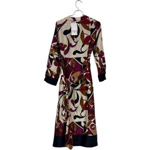 Zara Womens Shirt Midi Dress Size M Multicolor Printed Belted 9073/303 NWT