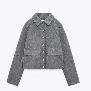 Zara Women’s Short Button Front Collared Coat in Grey Size L