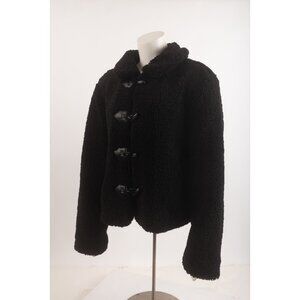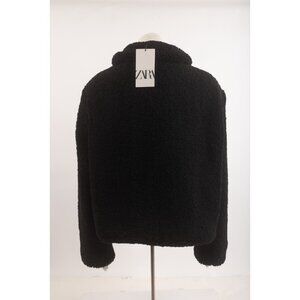 Zara Womens Short Shearling Jacket Coat Toggle Black L Large 8372/250 NWT