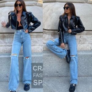 Zara Women's Size L Black Faux Leather Cropped NEW Jacket Boxy Blogger Moto Punk