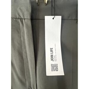 NWT ZARA Women Zip Front Raw Edge Waistband Wool Blended Mid-Rise Wide Leg Dress Pants Size L Green