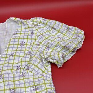 This listing is for a new with tags women's Zara checkered/floral print draped balloon sleeve mini dress in a size large. This dress was made in India and is made of 100% cotton. Measurements are: front top of collar to bottom vertically is 33.5“, back top of collar to bottom vertically is 34.5“, top of collar to end of sleeve is 14“, chest (pit to pit) is 35“, waist is 32”, hips is 33“, and bottom hem of dress is 56“. Please see all listing photos, as this listing is for sale in as/is new with tags condition.