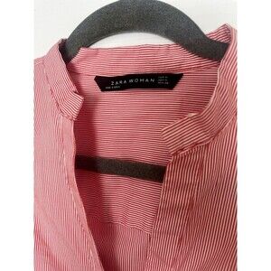 Zara Womens Size Medium Bell Sleeve Orange Stripe Button Down Shirt Blouse Top