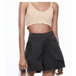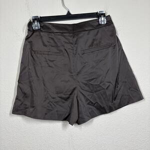 Zara Womens Size Small Flared Satin Shorts Brown Cotton Blend Pleated Pockets